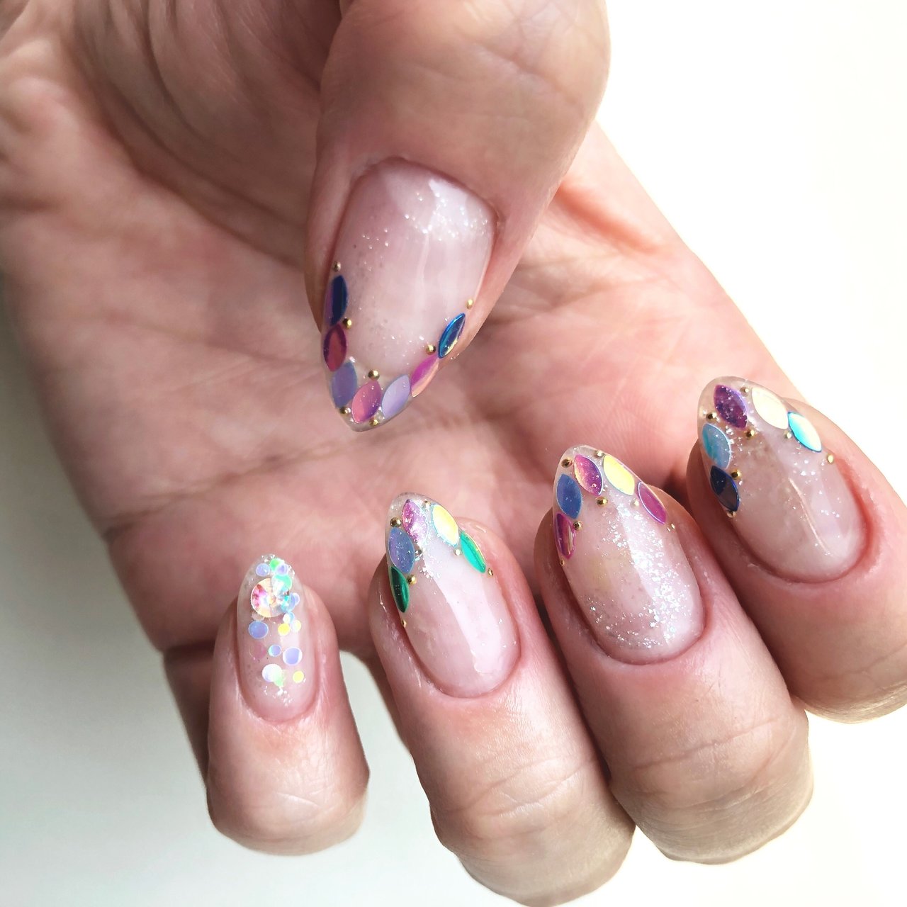 サンプルデザインより ラメネイル ラメグラデーション ニュアンスネイル ジェルネイル シェルネイル シンプルネイル グラデーションネイル クリアネイル ネイルデザイン 大人ネイル Japanese Nail Design Nail Designs Japanese Nails
