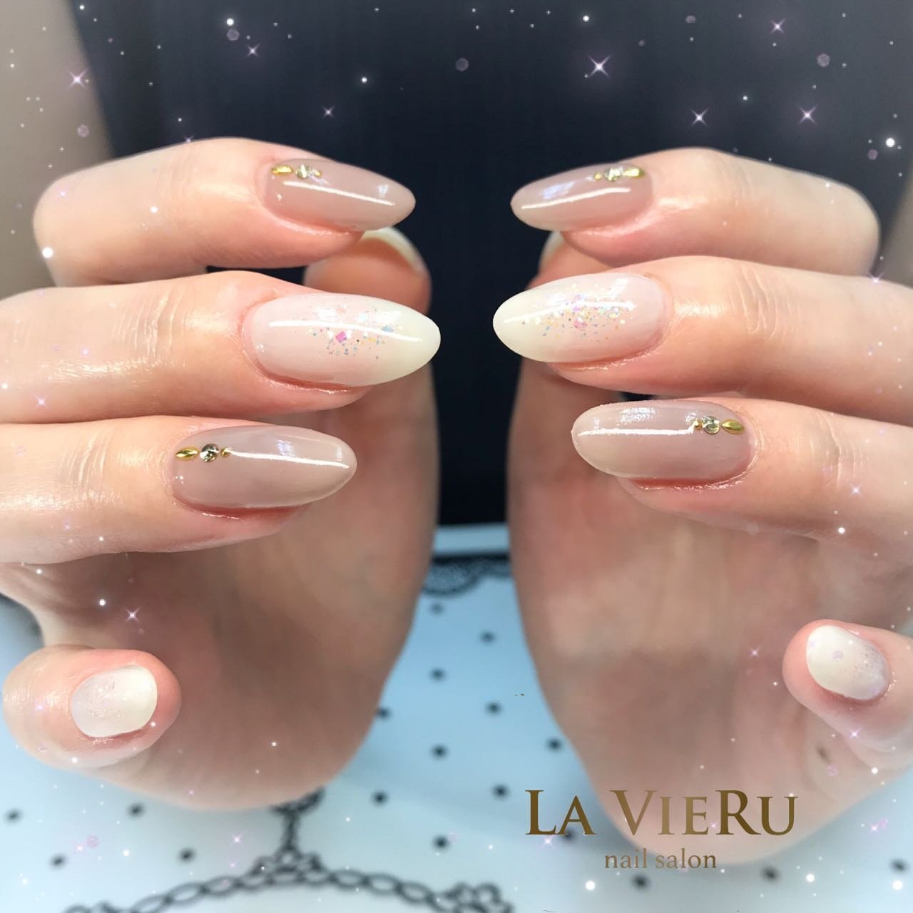 ジェルネイル19 ラメ グラデーション シンプルネイル オフィスネイル ブライダルネイル ナチュラルネイル オシャレネイル 阿南市 ネイルサロン Nail Salon Rosemind