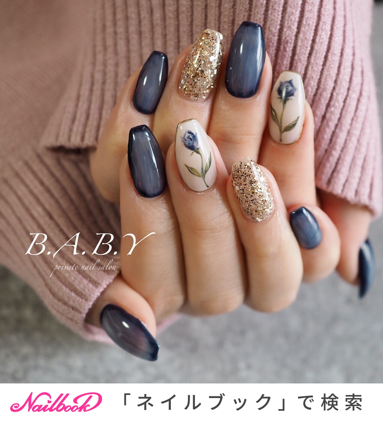 クリアネイビー ブルーローズ Aコース用デザインに変更可能です 自宅ネイルplus1所属 Plus1 のネイルデザイン ミニモ